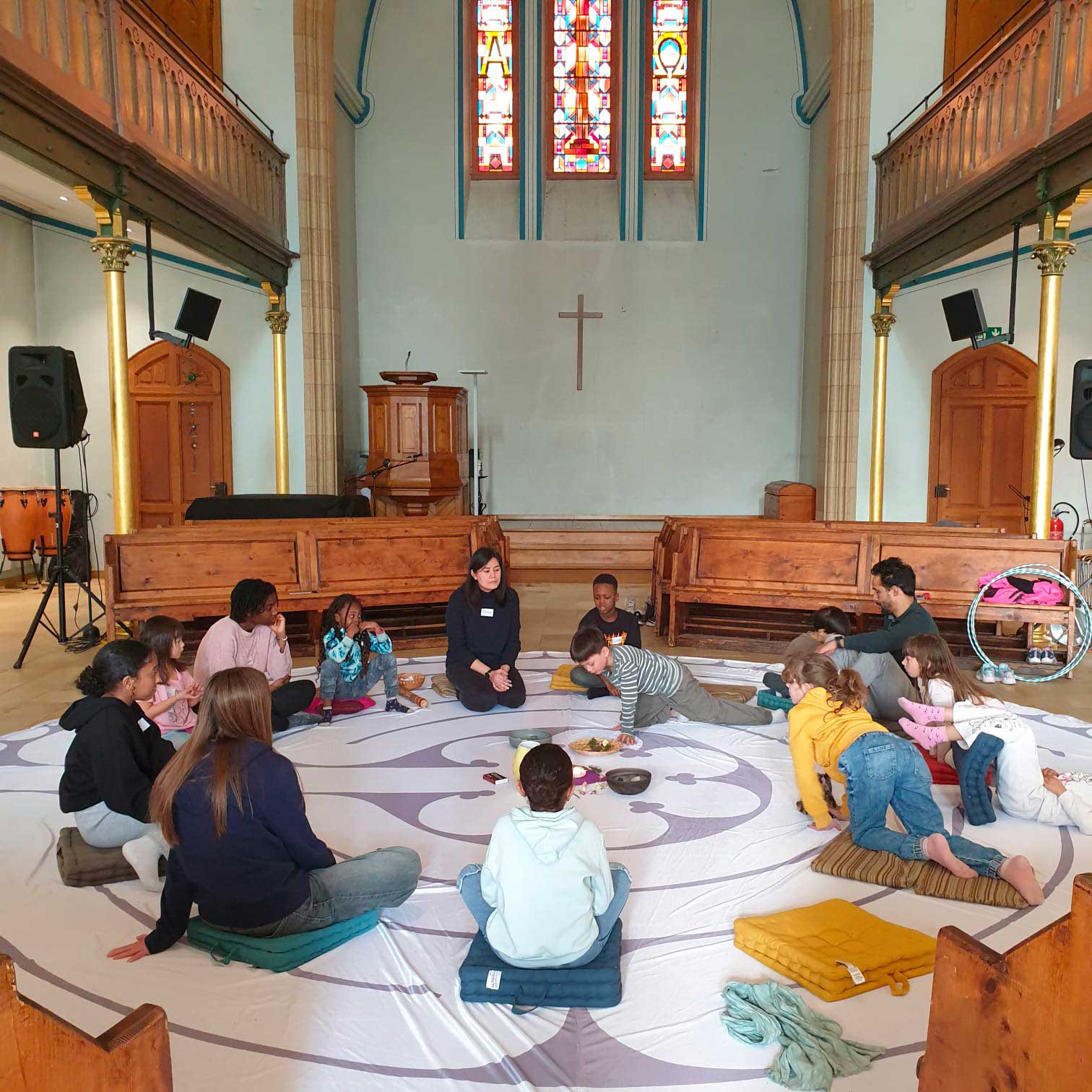 MosaïKids est conçu comme une série de mini-retraites qui nourrissent et développent la spiritualité innée que les enfants possèdent déjà. Il ne s’agit pas d’une école du dimanche traditionnelle ou d’un catéchisme en ce sens qu’il n’est pas basé sur le doctrine et qu’il n’est pas évangéliste (l’objectif n’est pas que nous croyions toutes et tous exactement la même chose). Il s’agit également d’un espace qui favorise l’approfondissement de relations dans la diversité, l’une des tâches primordiales du Christ et l’un des ingrédients essentiels pour rendre le monde meilleur.